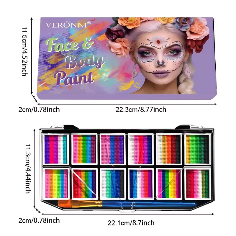 I dressed up as a fairy and used the rainbow colors. They didn’t itch or smell strong. After the party, I just wiped my face clean.