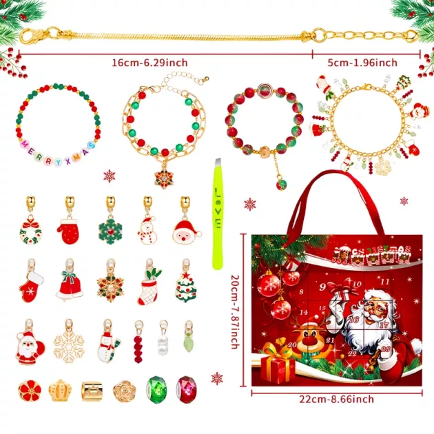 24 Days Christmas Jewellery Advent Calendar Bracelet Blind Box for Kids