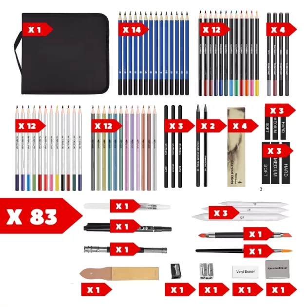 83Pcs Pencil Set Art Drawing Kit