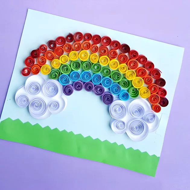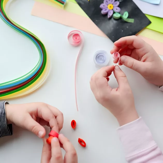 My niece loves making flowers and hearts with these bright strips. She’s more focused when rolling and placing them, and the results are always so pretty.