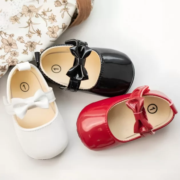 These sweet dress shoes are perfect for occasions or everyday flair. Designed for babies from newborn to 18 months with three sizes available, they offer a snug fit that stays on tiny feet. The non-slip bottom helps with early standing and walking stages. Choose a stylish and practical option that supports your girl’s development.
