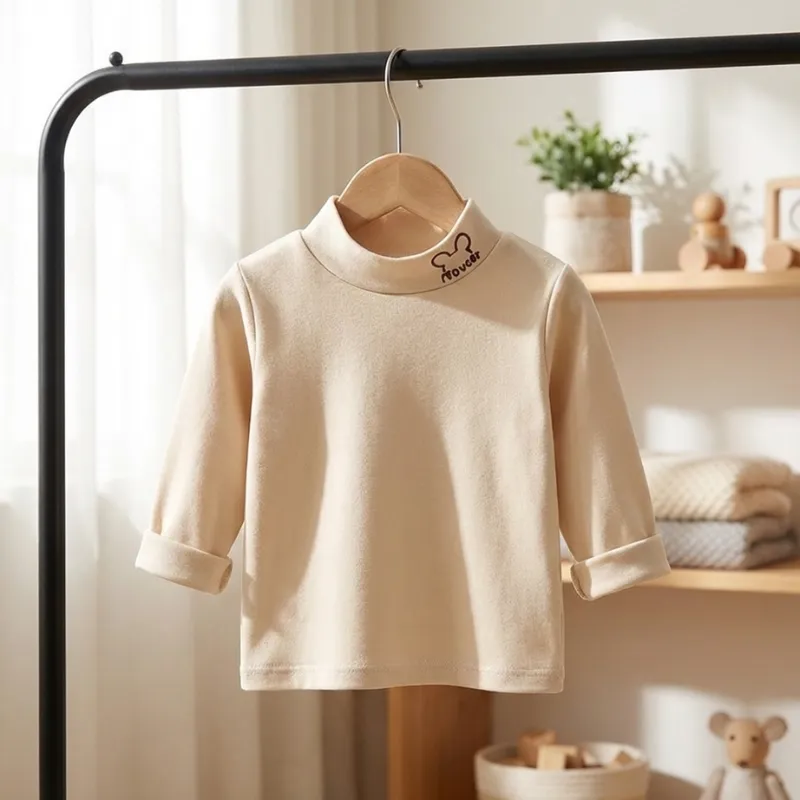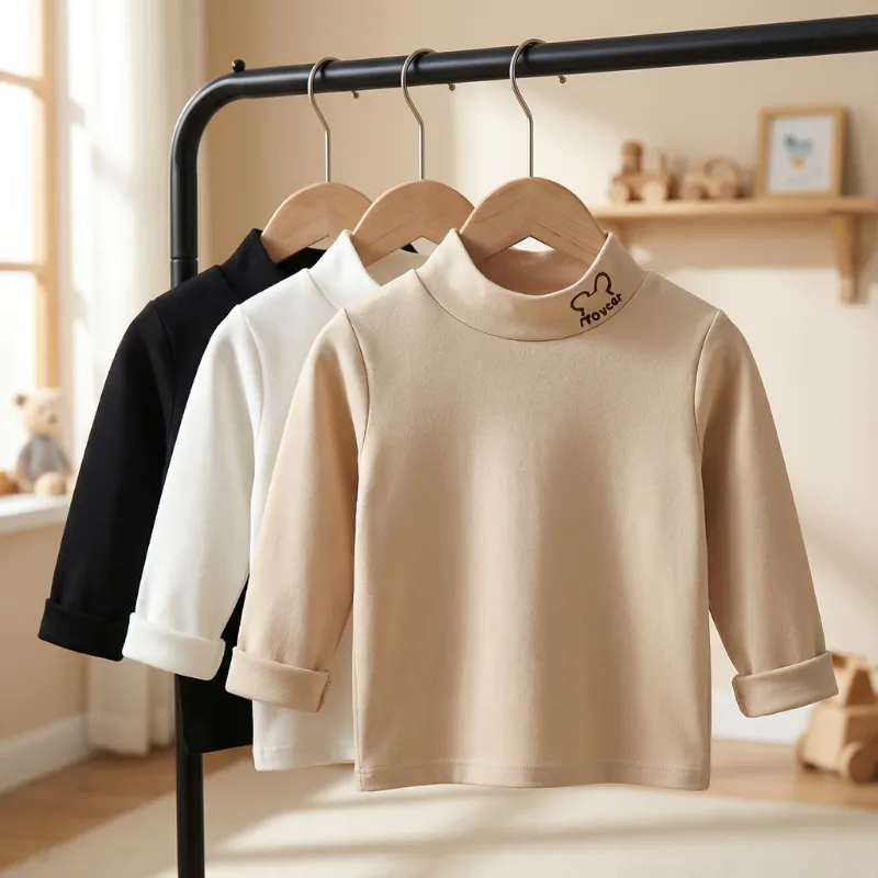 Casual Turtleneck Long Sleeve Warm Bottom Shirt for Kids