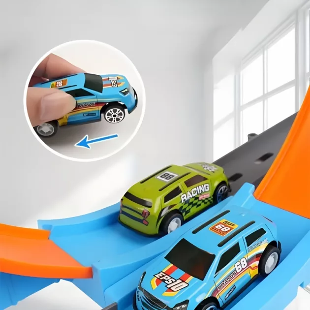 High-speed launch system - The powerful launcher propels cars at lightning speeds, delivering non-stop excitement for you. It guarantees fast races, keeping kids thrilled for extended play sessions.