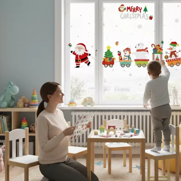 Children love to see rooms filled with festive cheer. These colourful designs bring instant joy to every corner of the home. Stickers come off easily, leaving the glass clean and clear.