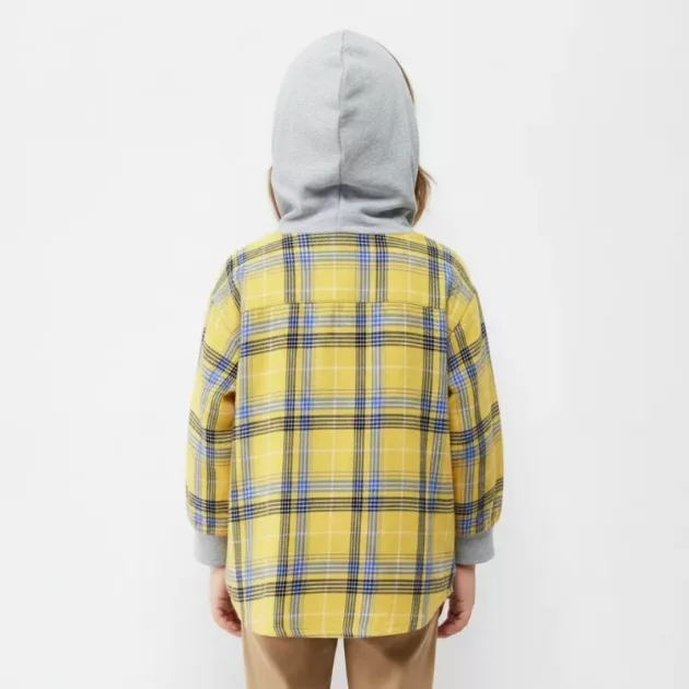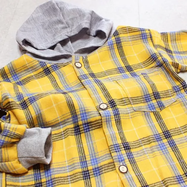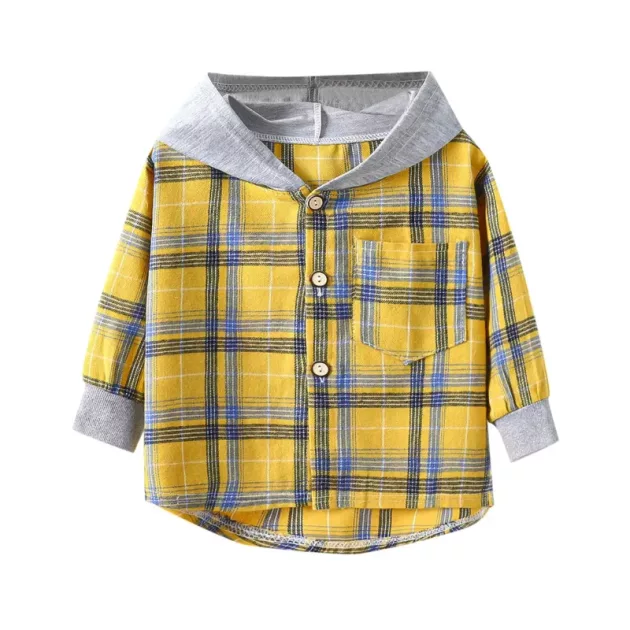 Cotton Plaid Button-Up Hooded Shirt for Kids