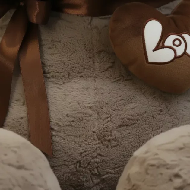 This big teddy makes sleep time cozy and safe. I pretend we’re on forest adventures together. Its fuzzy heart is really cute too.