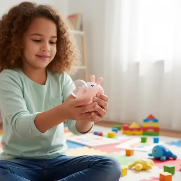 Mom gave me the bubble toy to help with bedtime nerves. Now I squeeze it and feel sleepy and calm every single night.