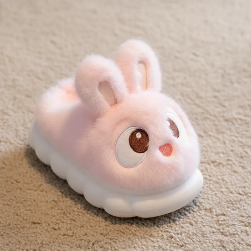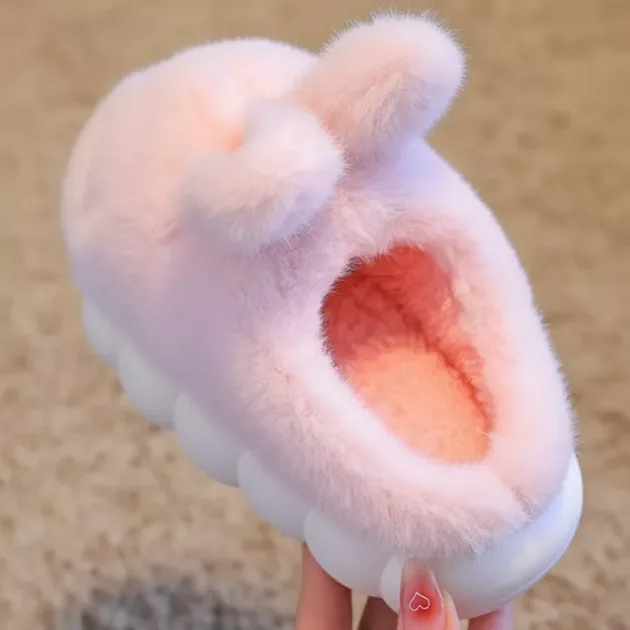 Cute Fluffy Enclosed Slippers with Thick Sole for Kids