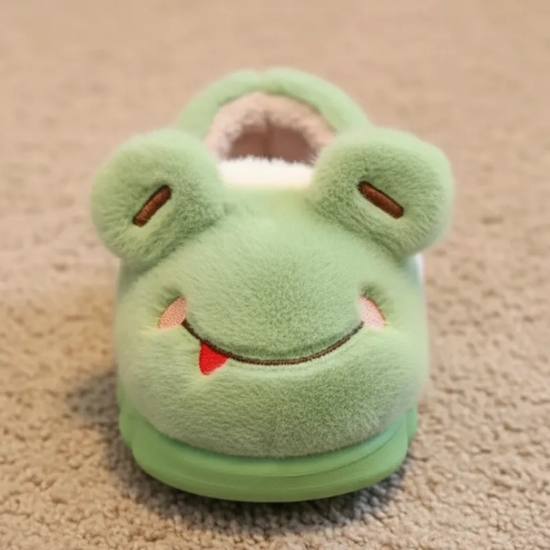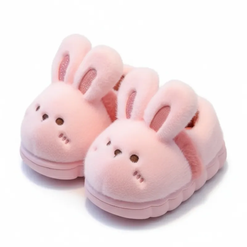 Cute Warm House Slippers Plush Waterproof Home Shoes with Thick Sole for Kids