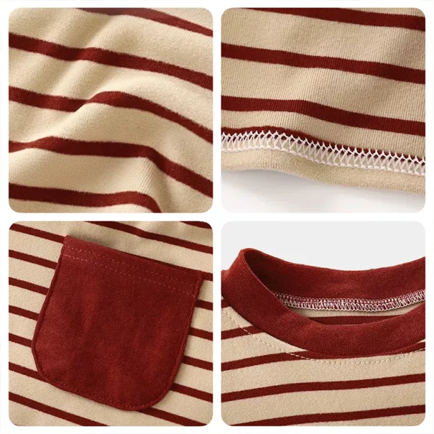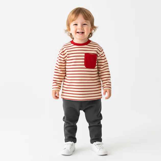 My daughter wears the striped tee every morning. It feels cozy and warm through chilly days. The pockets are great for her little treasures!