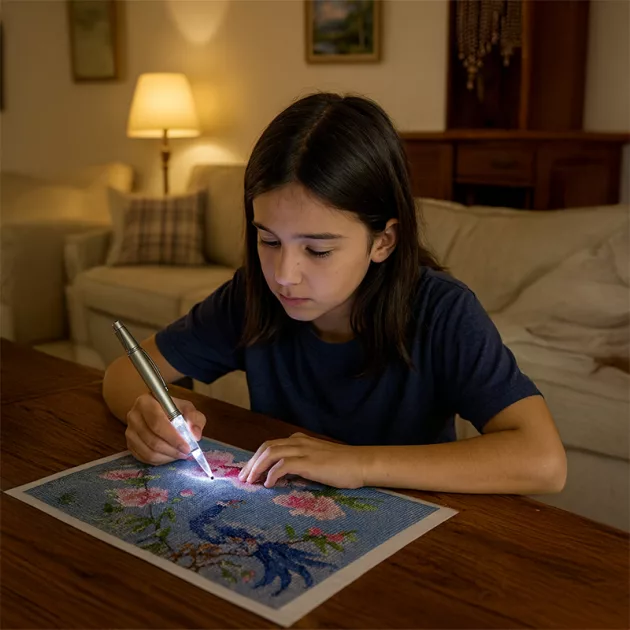 The shining tip helps keep the diamonds in the right place. Crafting stays mess-free, and it’s actually relaxing. I use it almost every day.