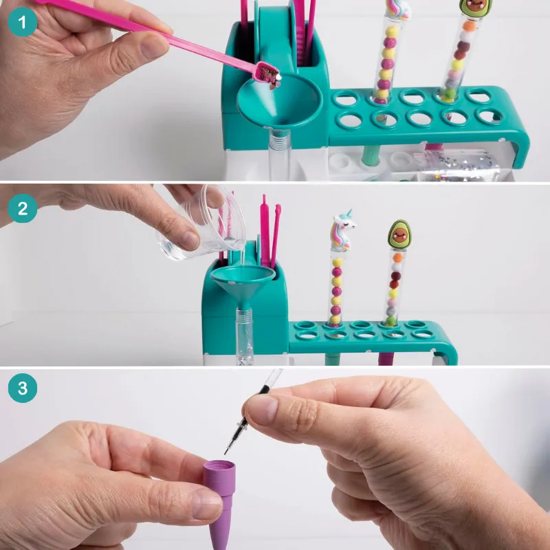 Making my own sparkly pens with this kit was awesome! My brother joined in and we both ended up with colorful pens we love using at school.