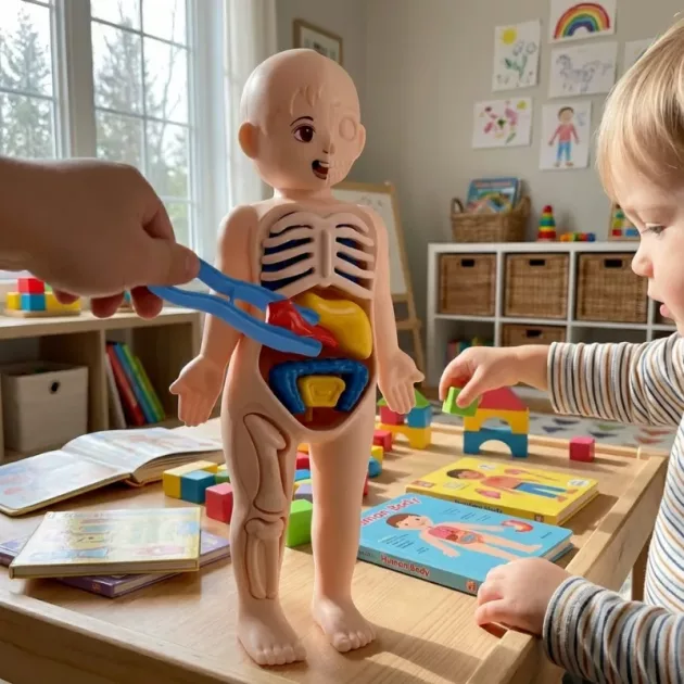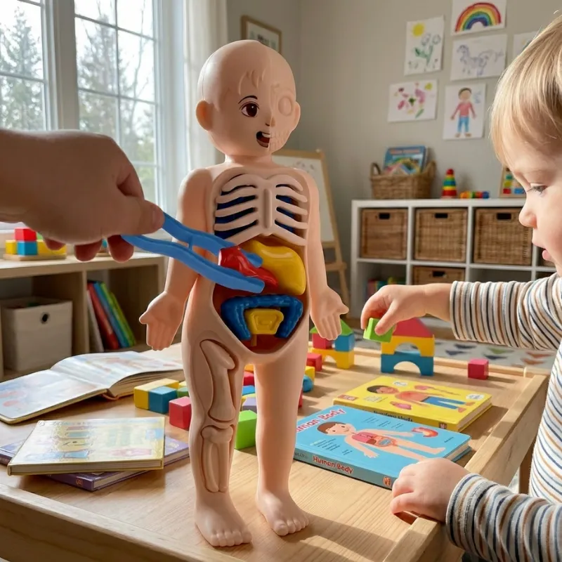My daughter asks so many science questions now after playing with her anatomy doll. She loves taking the organs out and remembering where they go.