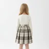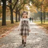 Fake Two-Piece Long Sleeve Plaid Dress with Beret for Kids Size Chart