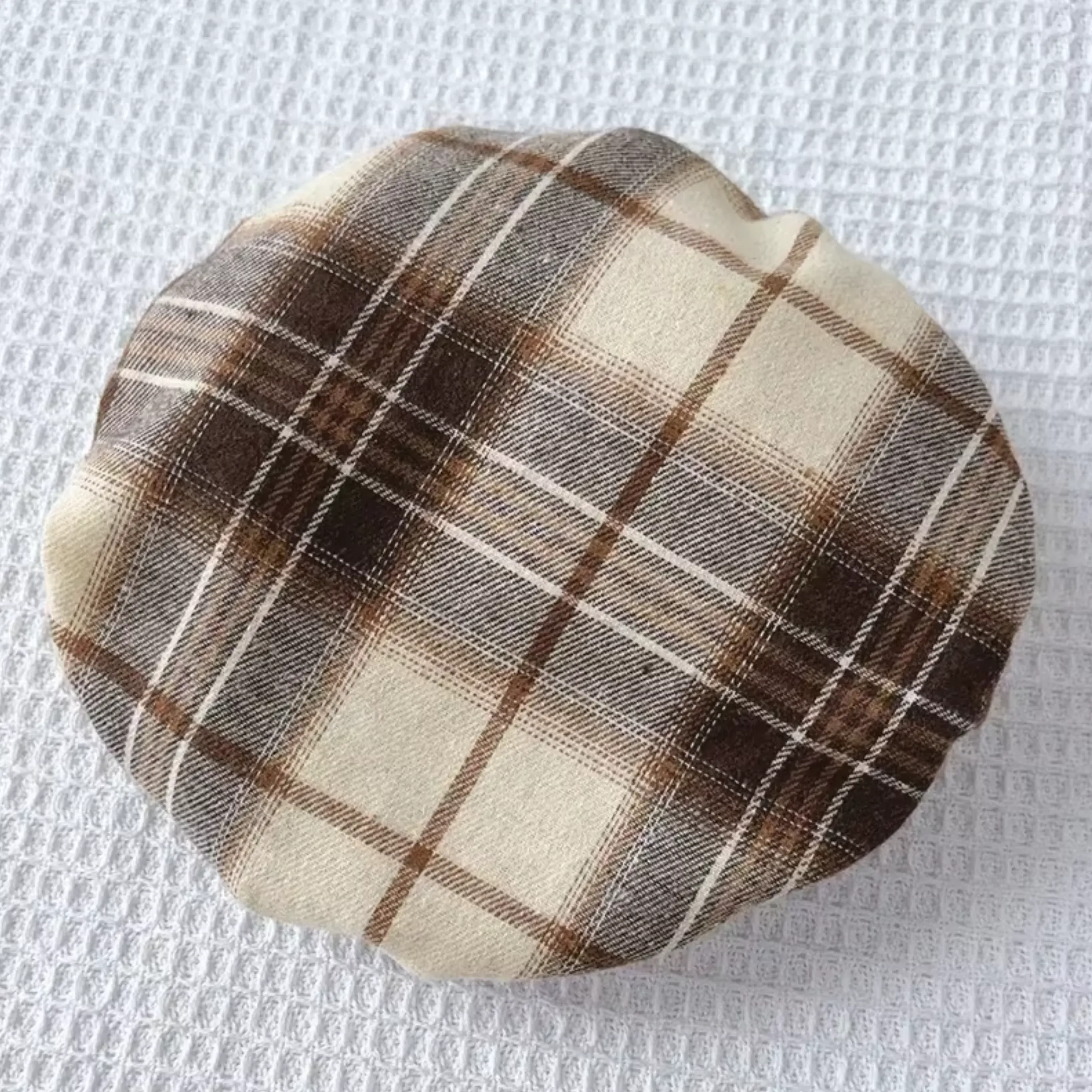 Fake Two-Piece Long Sleeve Plaid Dress with Beret for Kids