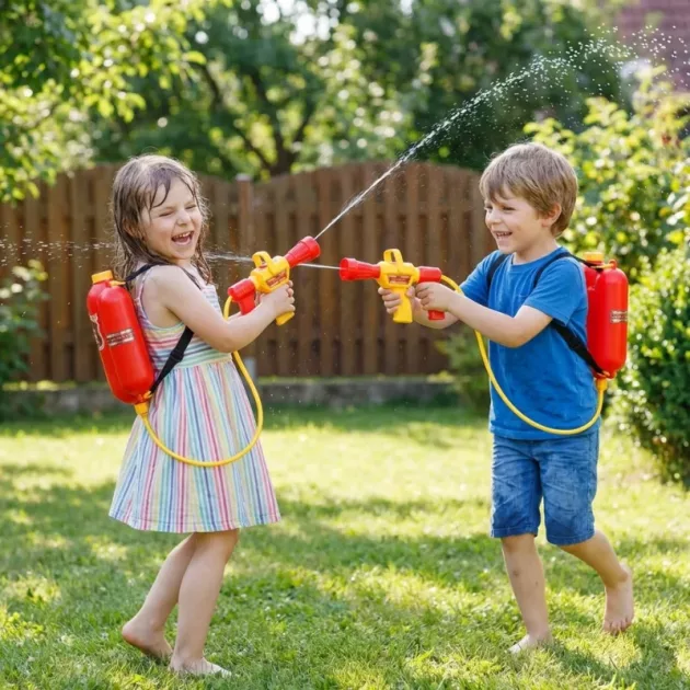 The firefighter pack turned our driveway into a mini splash park. Easy for little hands to pump, doesn’t feel heavy, and the yard plants get watered too.