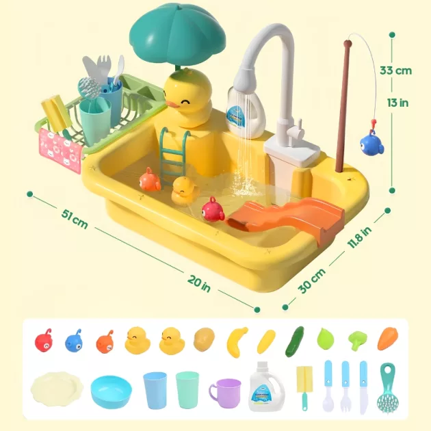 My child loves washing dishes with it. The colors are really bright and engaging.