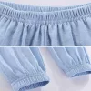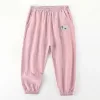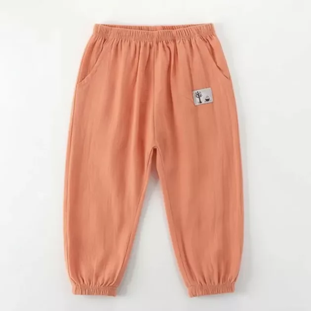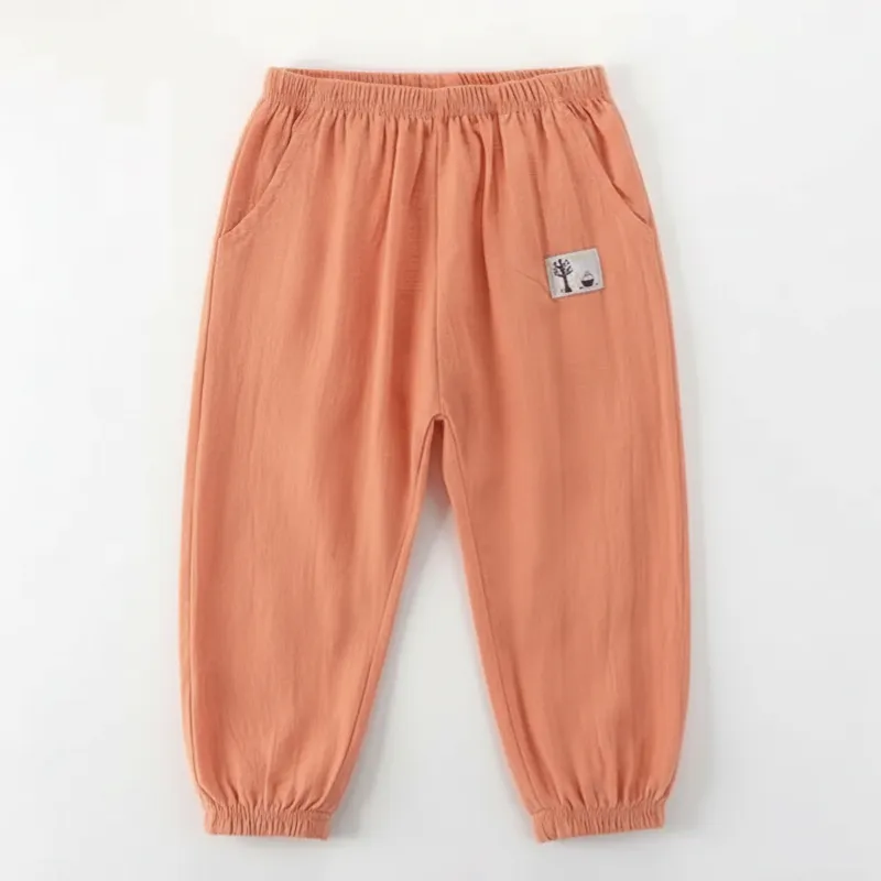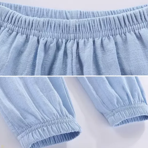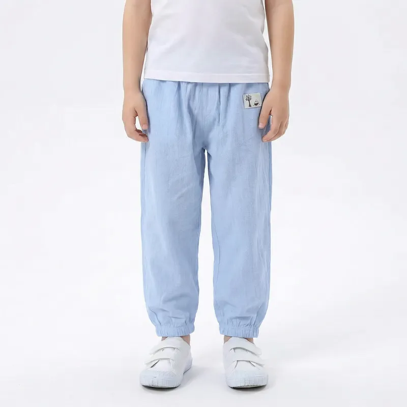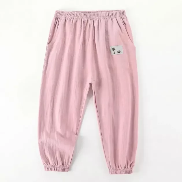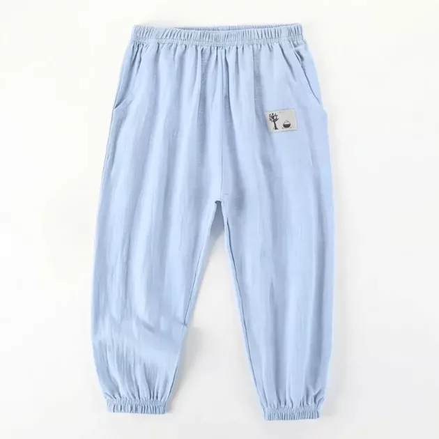 Lightweight Wide Leg Casual Cotton Summer Pants with Elastic Cuffs for Kids