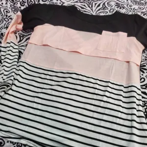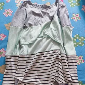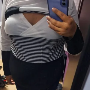 This maternity top is amazing! It’s so comfortable and the openings for nursing are really convenient. I love how the design adapts as my body changes. The fabric is soft and airy, perfect for keeping cool. I wear it all the time and it still looks great, so durable!