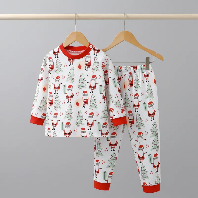 Santa Claus Long Sleeve T-Shirt and Pant Set Christmas Outfit Cotton Pyjamas for Kids