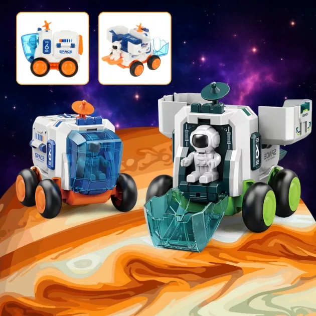 Learning activity - This shuttle toy teaches children about planets, rovers, and space travel. It promotes curiosity about science and discovery.