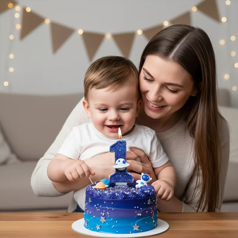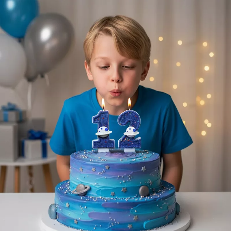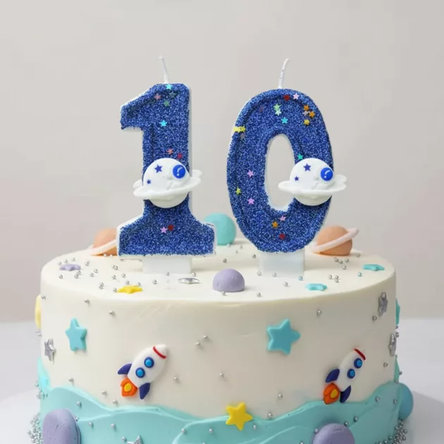 My son was thrilled seeing his cake with this candle! The space design looked so cool in every photo and it was easy to light.