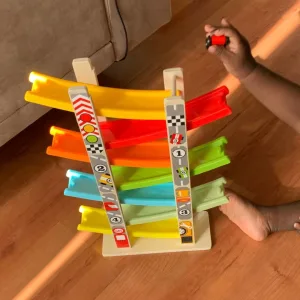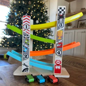 Our kids can’t get enough of the car ramp! It’s bright and fun, and the cars swoosh down smoothly. They stay entertained for hours.