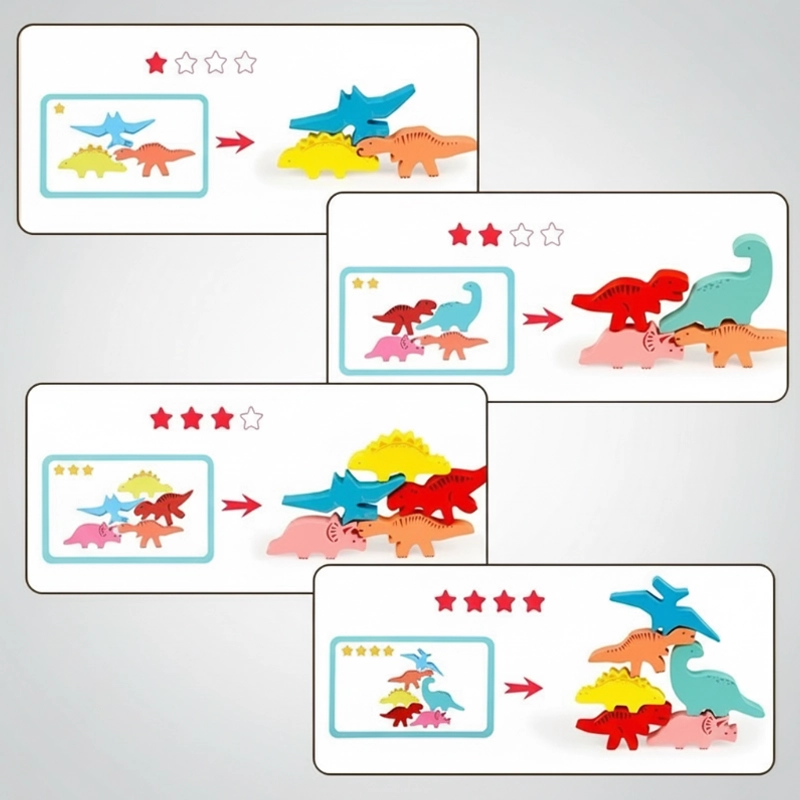 Every time friends visit, they start a dino race to see who can create a stable tower fastest. Hours disappear in giggles and dinosaur voices.